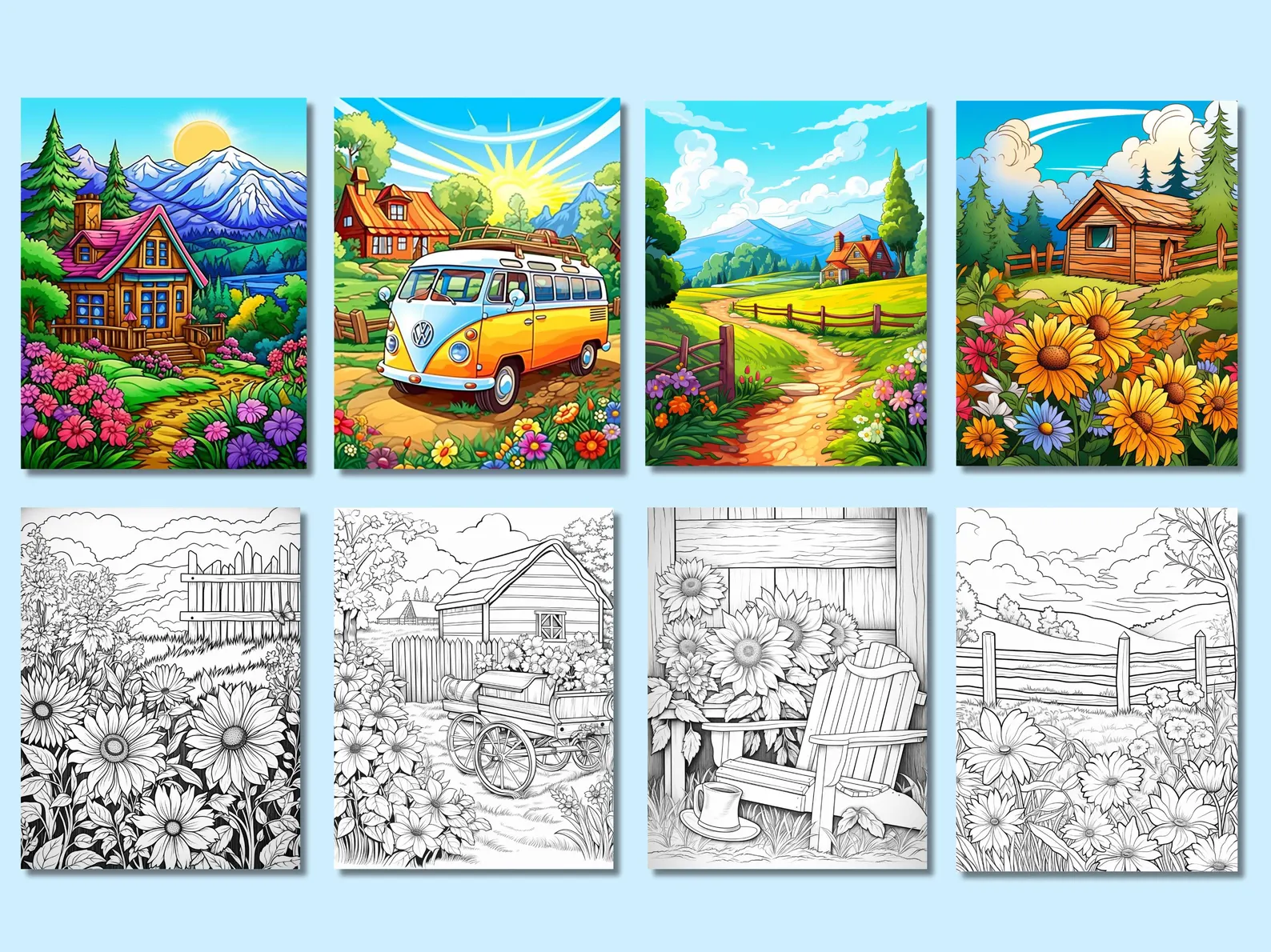 200 Country Summer Coloring Pages For Adults : Volume – 2